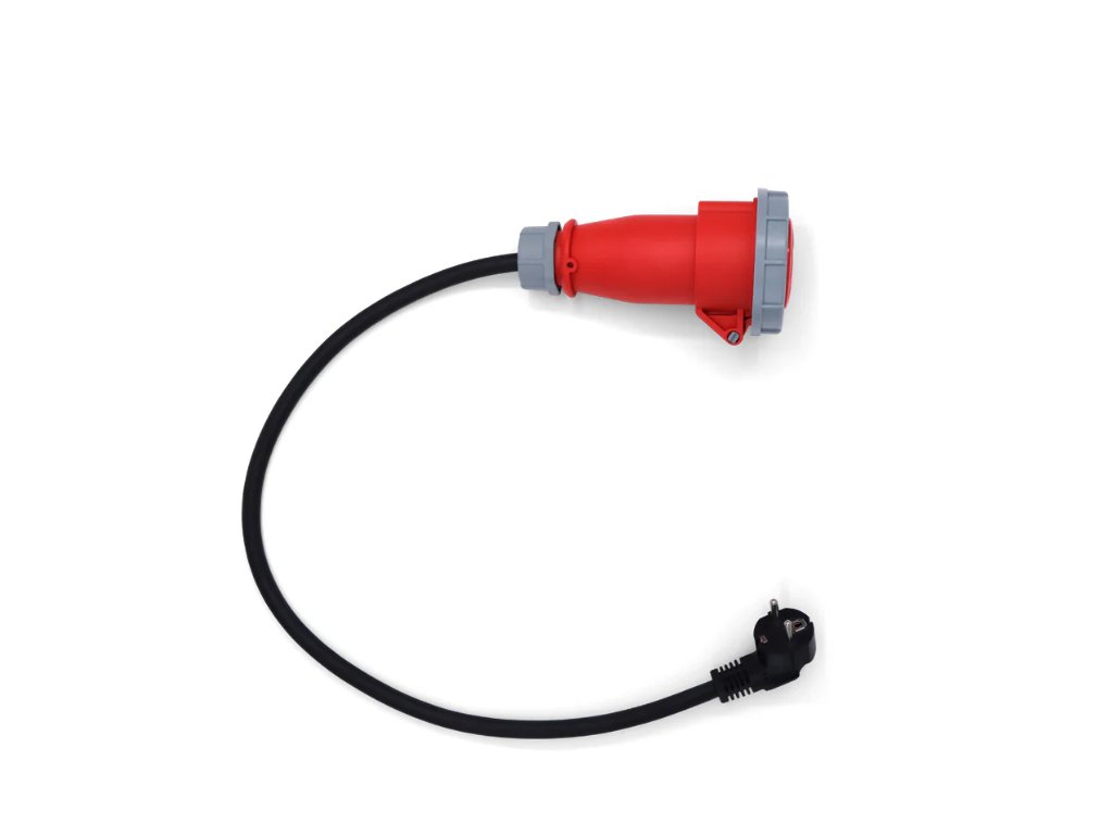 Tato redukce z červeného 5-kolíku CEE 400V (3 x 16A, samice) na běžnou 230V zásuvku (16A, samec) je kompatibilní se všemi nabíječkami a WallBoxy do výkonu 11 kW. Konektor má CE certifikaci a kabel je certifikován podle TUV. Redukce je odolná vůči vodě, prachu a UV záření. Nabízí automatickou detekci připojené nabíječky a automatickou změnu z trojfázového na jednofázový režim. Maximální nabíjecí výkon je 3,6 kW, minimální nabíjecí výkon 1,3 kW. Podporuje regulaci výkonu a je kompatibilní se 100% elektromobilů (EV) a plug-in hybridů (PHEV).