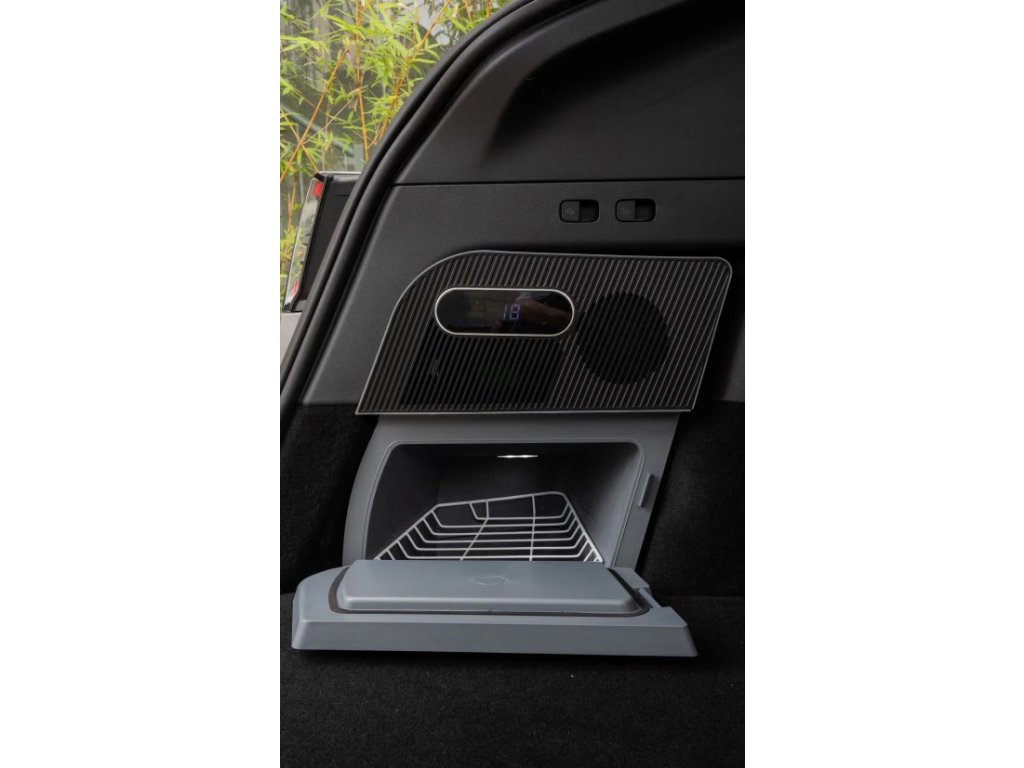 Úspora místa – díky promyšlenému designu se chladicí box pohodlně usadí ve spodním úložném prostoru, aniž by narušil dostupnost ostatních věcí. Invertorový kompresor – automaticky přepíná mezi ECO režimem pro úsporu energie a MAX režimem pro rychlé mrazení, přičemž nastavitelné teploty se pohybují od -5°C do 20°C. Dvojité vrstvy – horní část pro mražení, spodní pro uchování čerstvých potravin. Digitální displej – jednoduché a intuitivní ovládání pomocí dotykového panelu pro přesné nastavení teploty. LED osvětlení – integrované světlo umožňuje pohodlný přístup k uloženým věcem i v tmavém prostředí. Moderní design – černá a zelená barevná kombinace perfektně ladí s interiérem Tesla Model Y.
